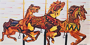 Original watercolor painting that was used to make the Our Fair Carousel poster to save the Cafesjian Carousel from being sold piecemeal. Framed. Image size 25" x 12.5"
